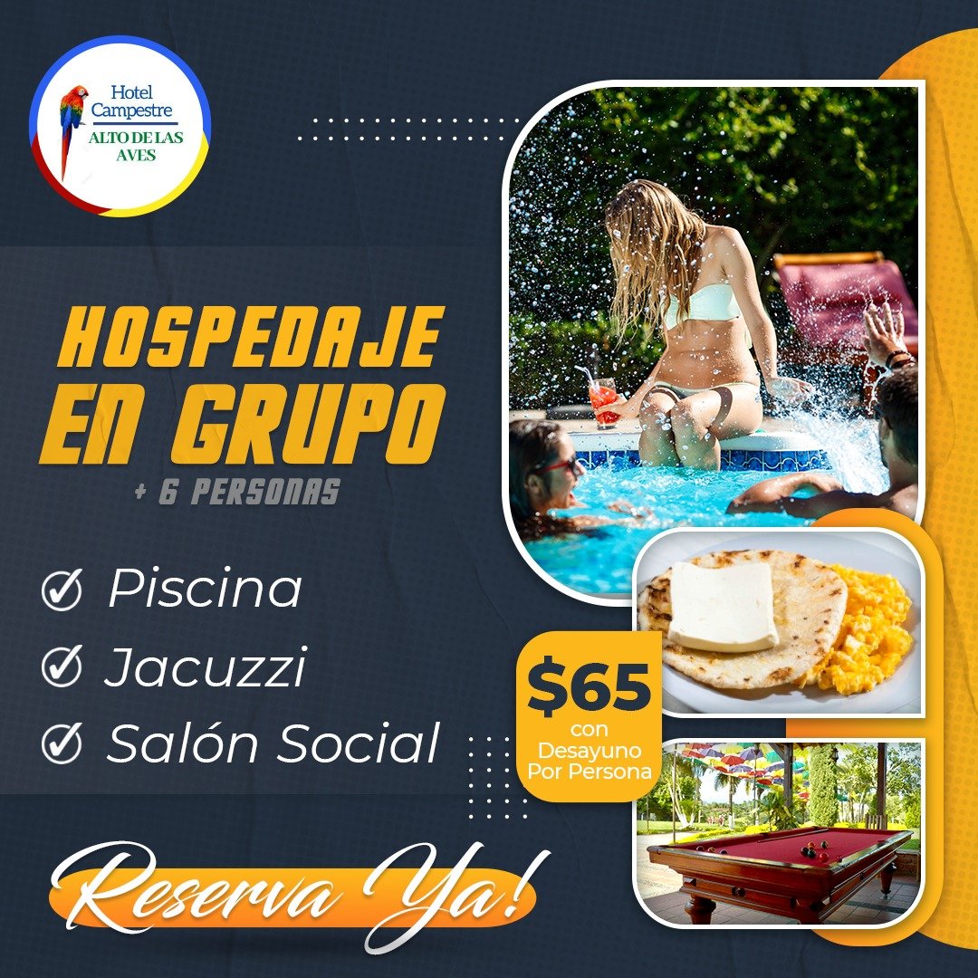 Hotel Campestre Alto de las Aves Abierto Ahora Cerritos kilometro 5 vía a la Virginia. Pereira, Risaralda, Colombia 0.0 0 Puntaje 0 21 Fotos Enviar opinión Compartir Compartir: Facebook Twitter This listing has expired.